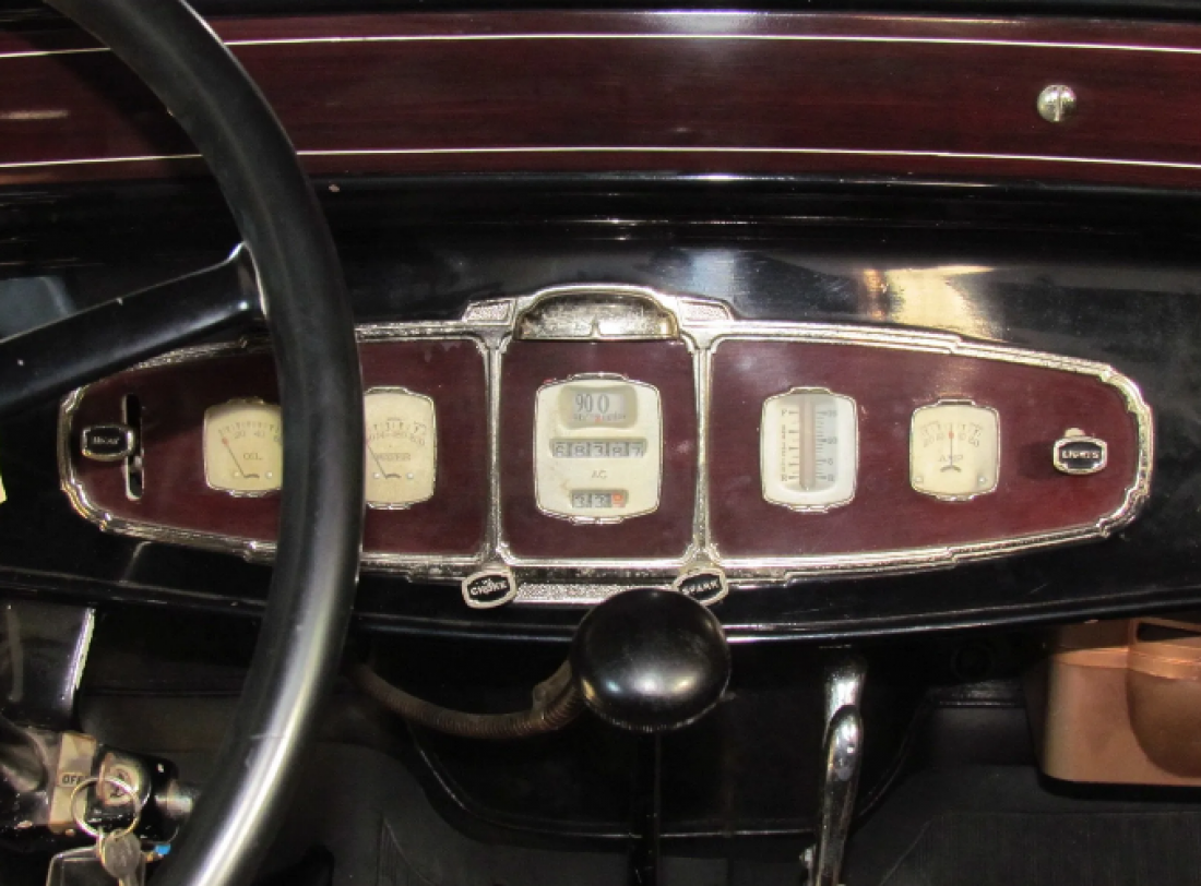 Het betreft hier een oudere restauratie, het lakwerk is netjes maar met wat gebruik sporen, het interieur is zeer netjes, met een vleug nostalgie. Het chrome werk is goed en de auto heeft een gereviseerde motor. De houten velgen zijn standaard en als optie heeft de auto banden met witzijvlak en 2 reservewielen in de voorspatborden. Verder heeft de auto 2 mooie chrome schijnwerpers, genaamd "Trippe Lights" voor op de bumper.