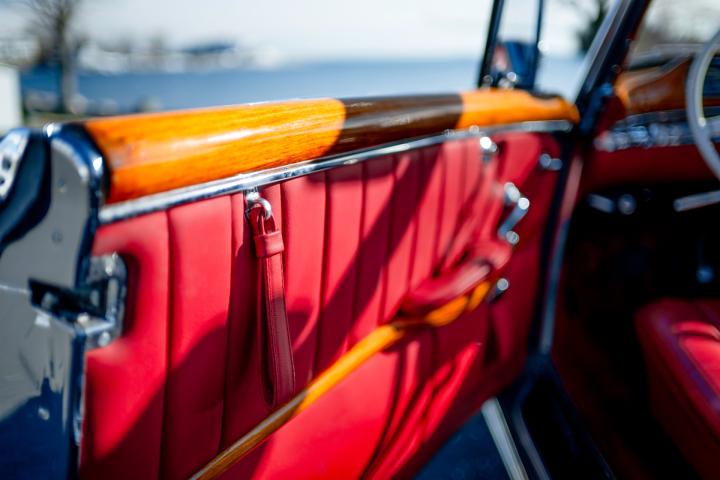 This beautiful specimen on offer was, according to the original receipt, picked up at the factory in Stuttgart on 12/06/1959 by the happy Californian owner. According to the fully completed and stamped service booklet that comes with the car, the owner has made a road trip through Europe, which can hardly be disappointing in a 220S. on 11/09/1959, according to custom's papers, the car was finally transported to California where the first owner maintained the car with a lot of love and care and remained faithful to it until 2017. Needless to say, California Classic cars are the best on the market, due to the dry and warm climate, making this 220S arguably the most excellent on the market. This 220S was finally registered by its second owner in Belgium, in 2017. Although this car was still in perfect condition, it underwent a complete ' nut and bolts' restoration to absolute competition condition, with an eye to the original configuration. For example, the bottom plates were retained. According to the data, the chassis and engine numbers are matching. which is very difficult to find today. In addition, this car is equipped with optional 4 seats, of which the seats are optionally adjustable, which makes this 220S Cabriolet extremely rare.