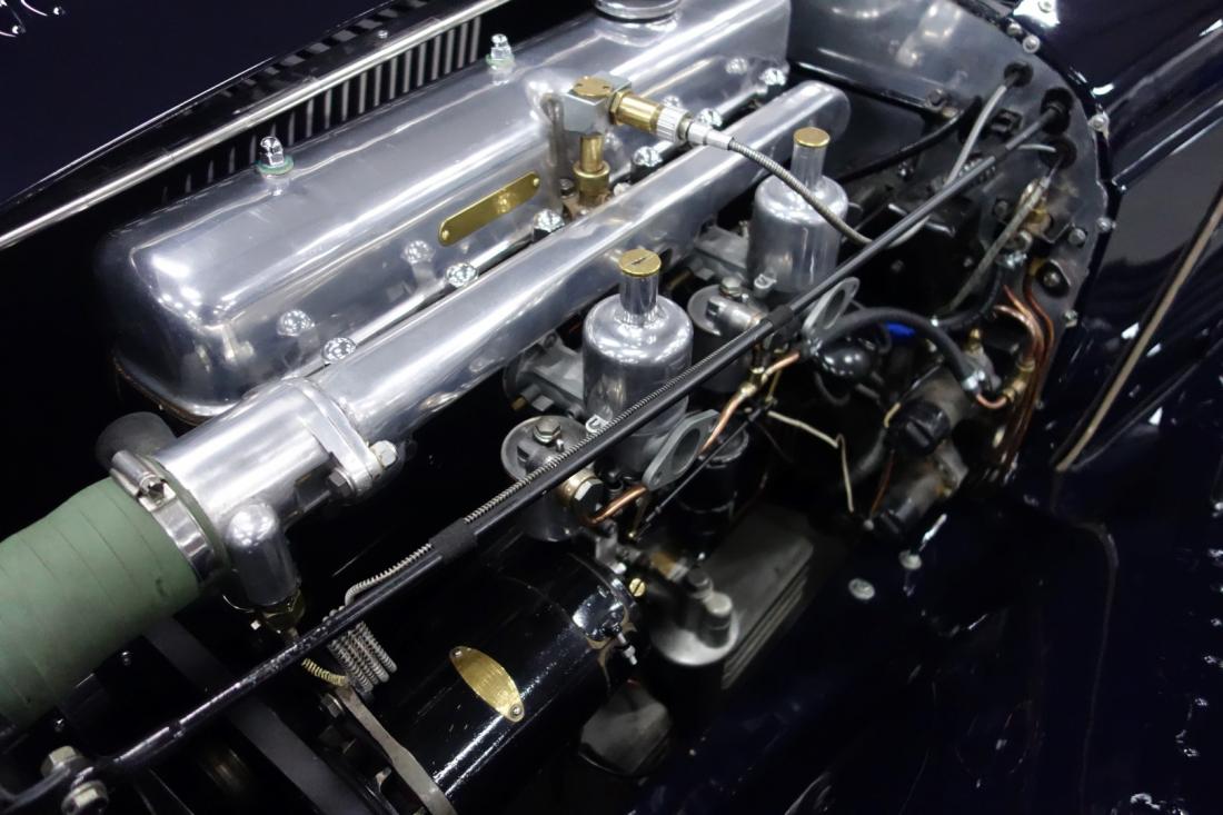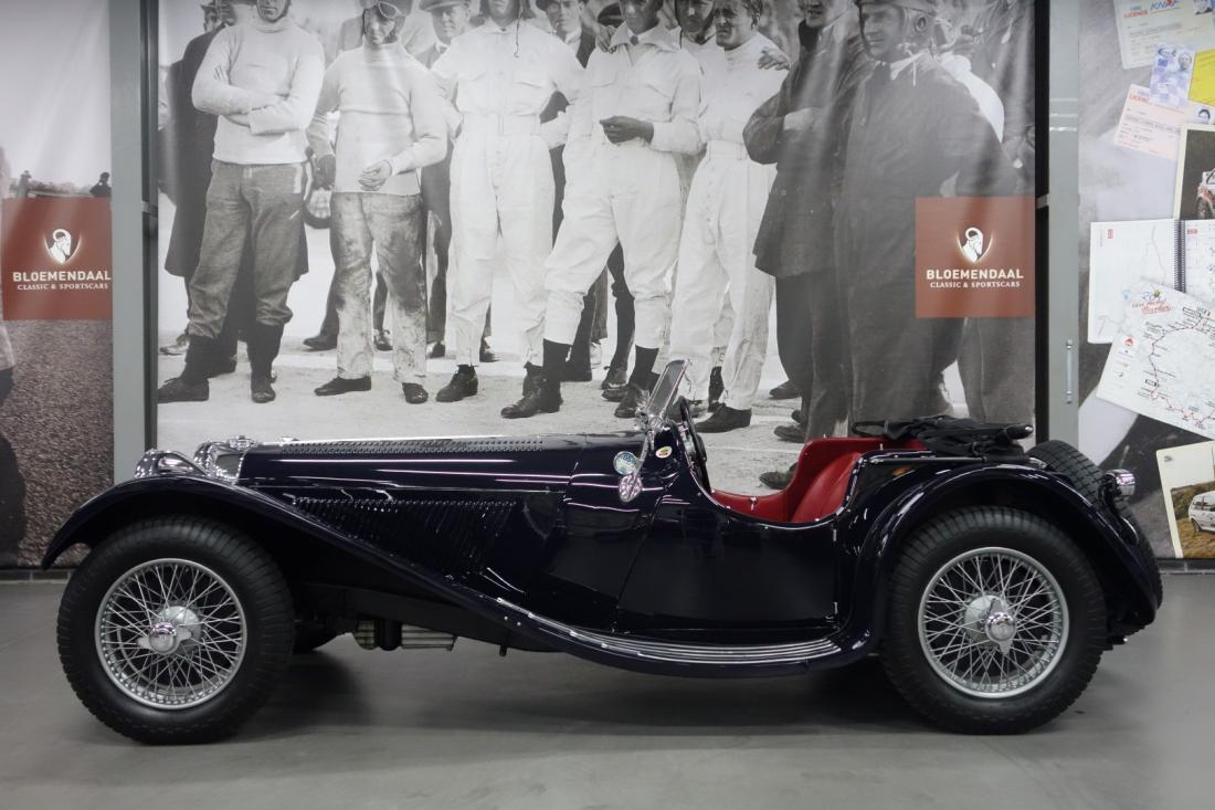 In the case of this beautiful dark blue SS 100 we are talking about a 2.5 Liter version with matching numbers and color, of which only 198 were made between 1936 and 1939. At that time the purchase price was £ 395, -… In the following decades this SS was entrusted to some carefull owners and the car also saw something of the world, because in addition to his native England, it also drove for years in the USA and on the island of Jamaica. The most recent years the SS 100 was in the hands of an Englishman living in the Netherlands who, among other events, drove the legendary Mille Miglia. The maintenance was done to a true SS specialist and all invoices and correspondence are also present. Of course there is also an original heritage certificate.