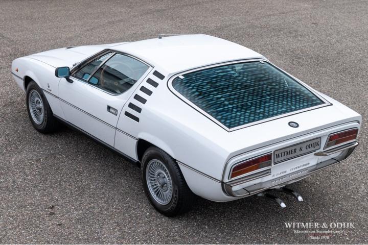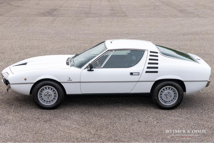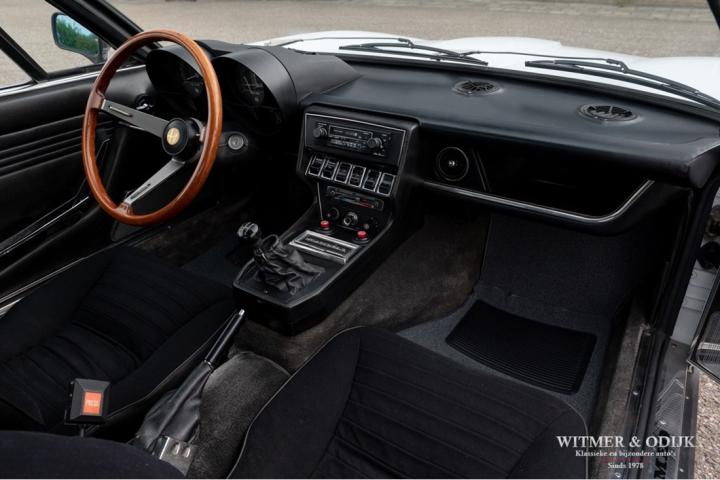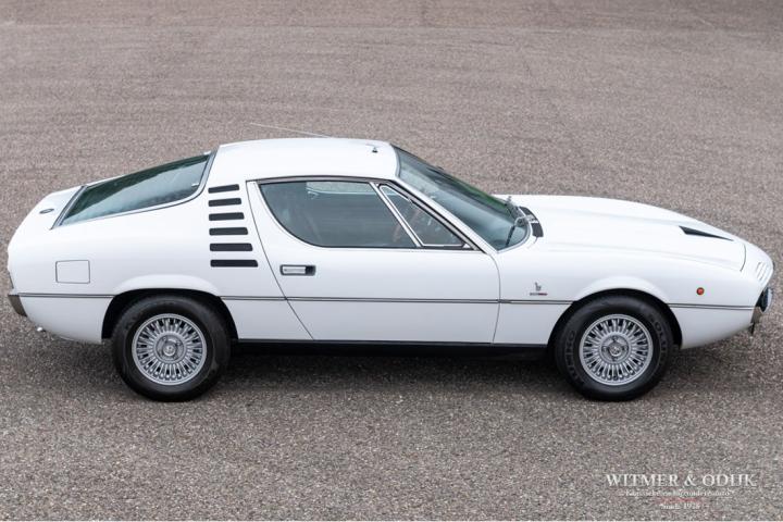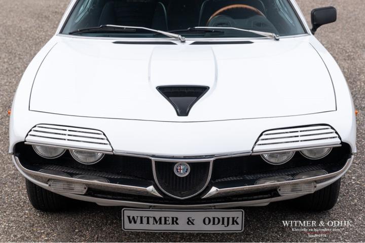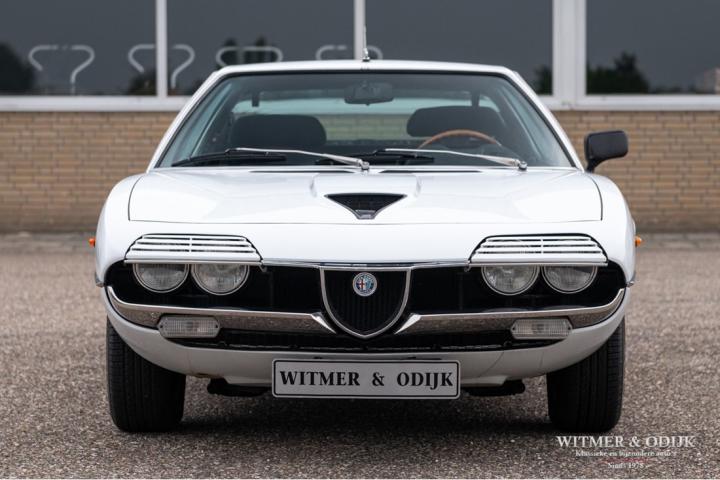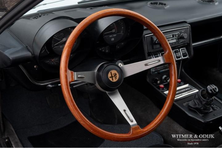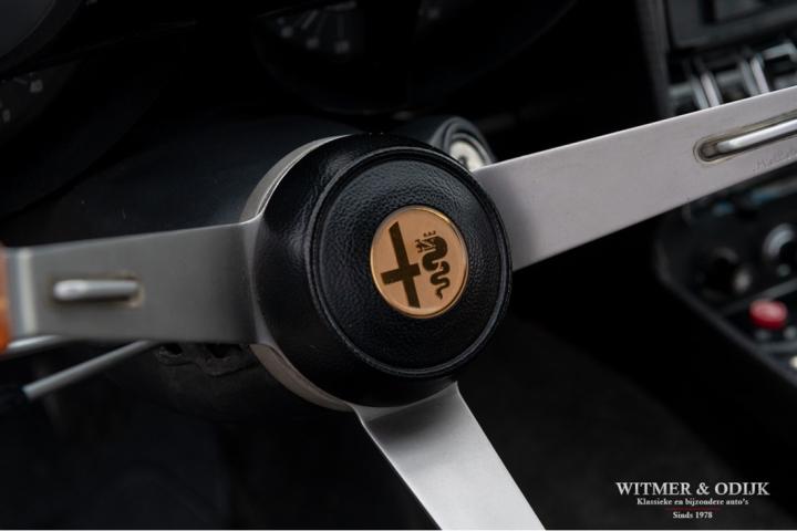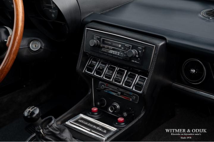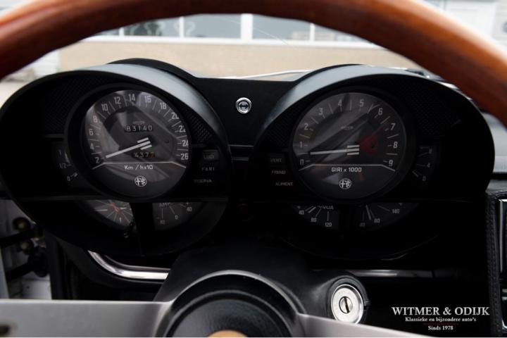 The Alfa Romeo Montreal, the magnificent design by Marcello Gandini, also the designer of the legendary Lamborghini Miura as the air intakes behind the doors confirm, was presented in 1967 at the Expo 67 in Montreal. There the concept kept the unofficial name that the public had started to give the car in Canada after which the factory eventually took it over. At that time, the Montreal, just like the recent C8, was design-wise far above the average 4-cylinder range of Alfa Romeo. For example, there was the V8 that was derived from the engine of the famous 33 Stradale, a 5-speed gearbox from the German ZF, a limited slip differential, dry-sump lubrication, the SPICA injection system and last but not least the beautiful design. Most striking details; the headlight grilles that fold away when using the light, the bonnet with beautifully camouflaged curvature and the air vents that are also present on the Miura. Which by the way should have been air intakes in the first place because the design would have a mid-engine. Now one of the most beautiful style elements of the Montreal. Finally, click on the photos of the speedometer and rev counter and see that the Montreal is also unique at this level of detail. In recent years, she has been one of the strongest rising stars in the classic firmament, for incomprehensible reasons the appreciation was not always there, which is why restorations from the past were often cheap and poorly executed. This Alfa Romeo Montreal has been preserved so well that she was only repainted once for cosmetic reasons. The paintwork deserves a special mention. Flawless craftsmanship. She has been used so little that the car is otherwise completely in original condition, which makes this Montreal a very special and iconic classic.