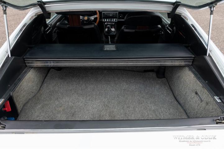The engine compartment is completely original and clean. The beautiful V8 still has the original factory paint on the valve covers, no corroded oil residue. The whole offers a beautiful view of how the car left the factory in 1972. Visible maintenance has been carried out. All this with correct materials. On the inside of the bonnet still the sticker with oil regulations from the factory. The trunk still has the original upholstery and is nice and clean and undamaged. Original jack and spare wheel present. The 14 inch light-alloy Campagnolo rims are free of parking damage and brake dust. Very good tires around this.