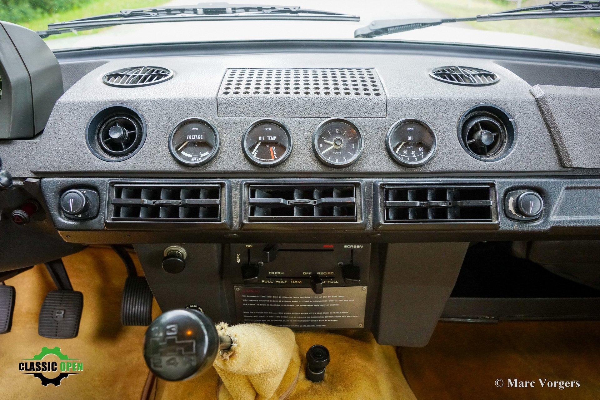 Deze robuuste maar luxe 4x4 in jaren 70-stijl (de ‘daddy’ van alle moderne SUV's, maar met ECHTE terreinkwaliteiten!) beschikt over een uitgebreid dashboard, compleet met extra centrale meters, zeer comfortabele stoelen, stuurbekrachtiging en airconditioning. Deze magnifieke auto is door de jaren heen zeer goed onderhouden en verkeert in een zelden geziene zeer originele en uitstekende conditie!