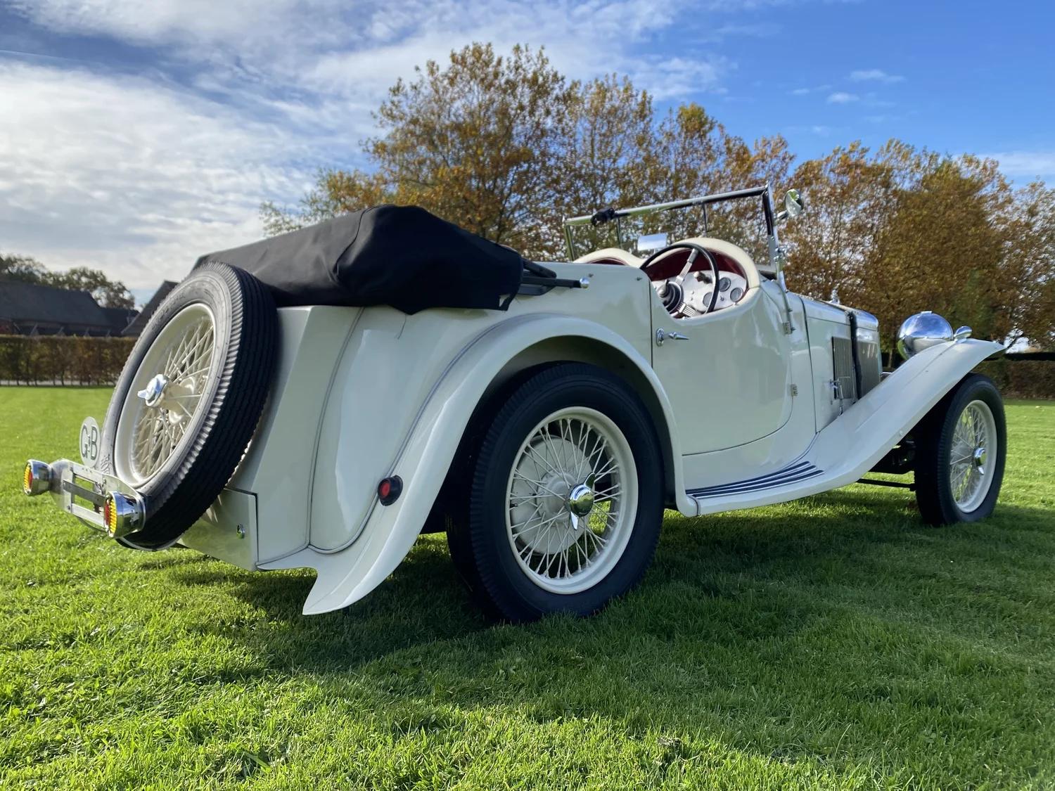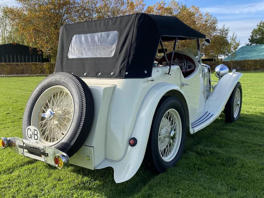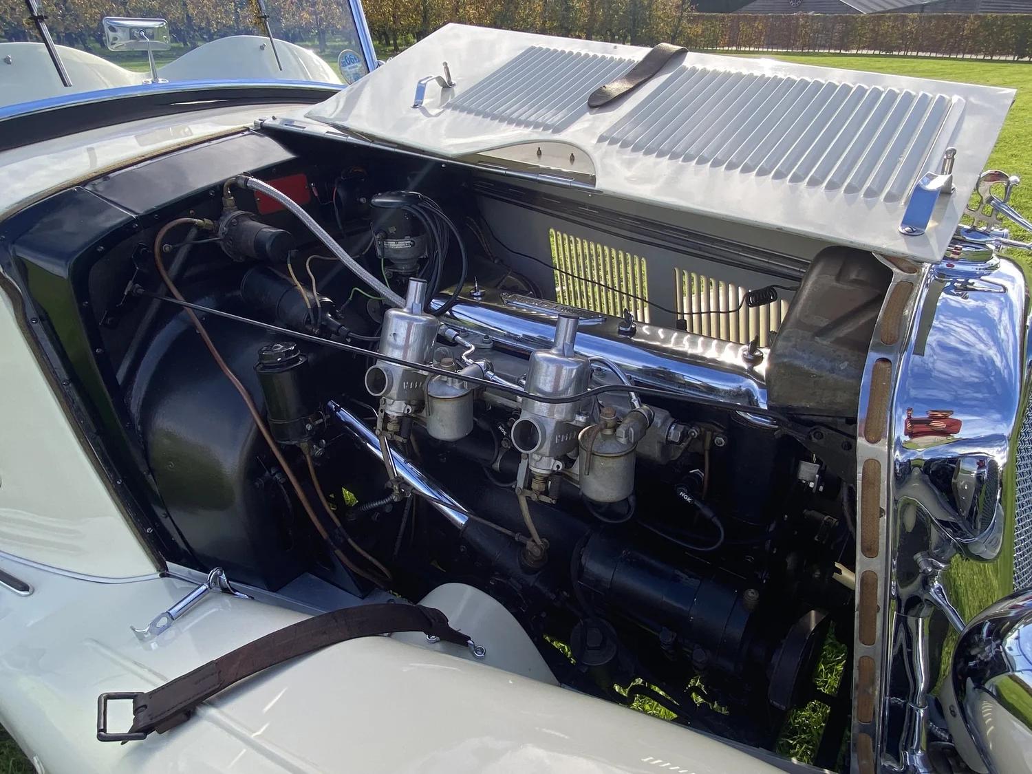 This beautiful Wolseley Hornet began life as a closed saloon. in 2009, the car was extensively restored in Germany by a marque specialist. During the restoration, the saloon body was replaced by an old ‘Daytona’ body fromt Eustace Watkins (London, UK), which was also fully restored. The Hornet is powered by the original (rebuilt) and very smooth-running original 1378cc six-cylinder inline engine, mated to a four-speed manual gearbox. This beautiful special is in sublime top condition and the car gives you the special pre-war driving experience in abundance! The windscreen can be folded down. This is a rare six-cylinder Wolseley Hornet and a sublimely built special!