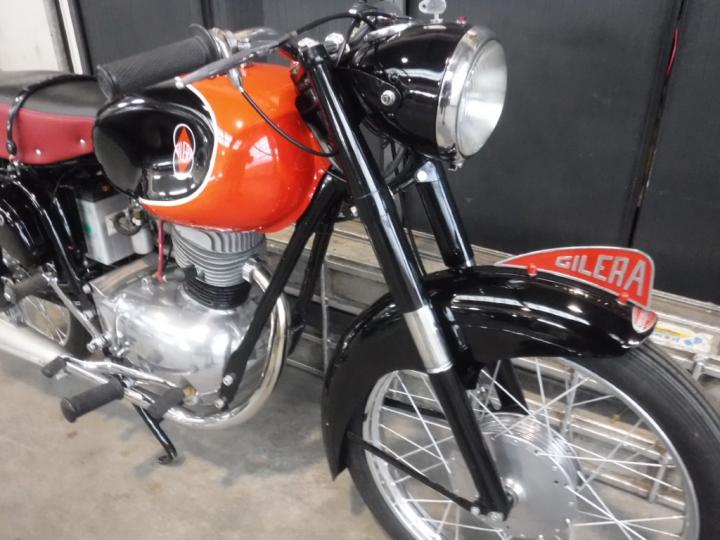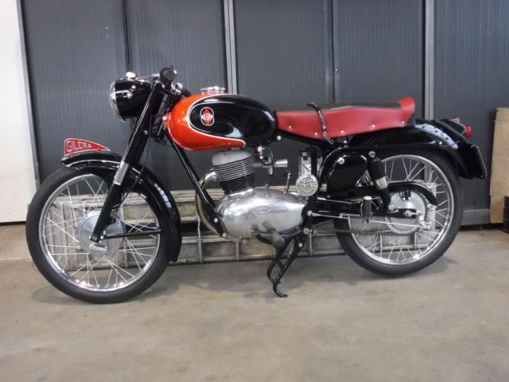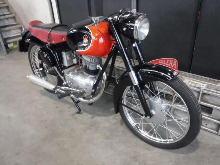 Een zeer mooie, interessante 1956 Gilera G150 Sport. Zeer mooi alsof-ie nieuw zo uit de fabriek komt. Echt uniek 1 cil 150 CC in deze conditie. Frame no is 1977451.Komt met NL kenteken dus rij er mee naar huis. Grootste keus in ECHTE klassiekers met meer dan 450 stuks in de Stolze Collectie: van project tot perfect !